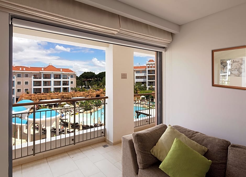Family suite with an elegant décor and a separate seating area. The 2 spacious balconies enjoy views over Vilamoura.